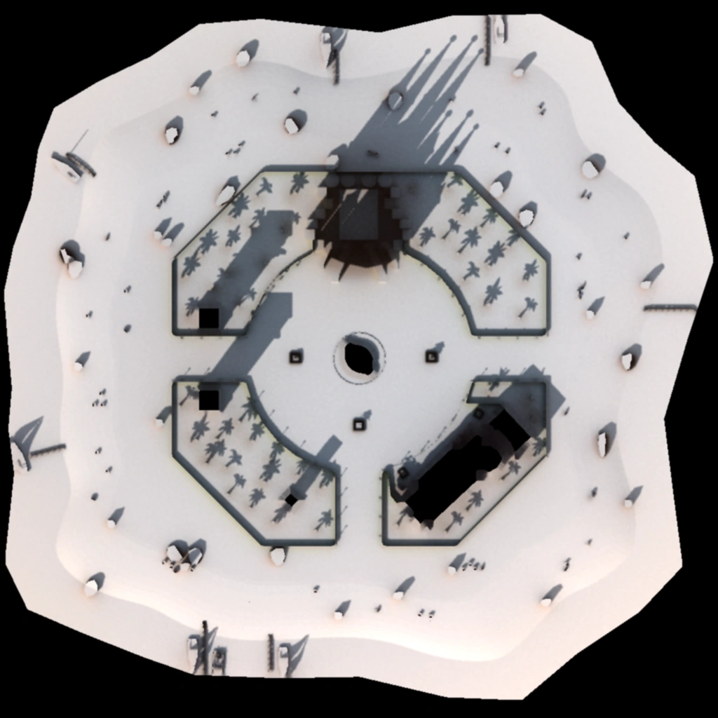 - Die Form der Insel erinnert ein wenig an eine Kampfarena.