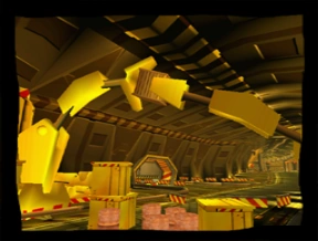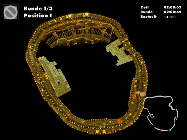 | Drei dieser Abschnitte kann man abkürzen und so eine runde Runde fahren, allerdings muss man sich bei jedem der drei Geheimwege durch ein Dickicht von Kisten manövrieren.