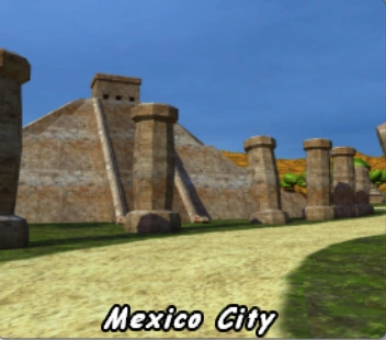 Die Strecke führt durch eine Landschaft, die mit Antiken Tempeln und Häusern bestückt ist.