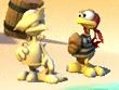 Das Palmenhuhn versucht wohl schon seit längerem vergeblich, die Kokosnuss zu erreichen, daher tritt es gelegentlich gegen die Palme. Nachdem es an der Palme gerüttelt hat, kannst du gegen diese schießen, was dazu führt, dass dem Huhn die Nuss auf den Kopf fällt. Dadurch heimst du 30 Punkte ein. Fängt es allerdings die Kokosnuss, kassierst du 20 Minuspunkte ein. Ballerst du separat auf Huhn und Nuss, erhältst du 10 bzw. 12 Punkte.
