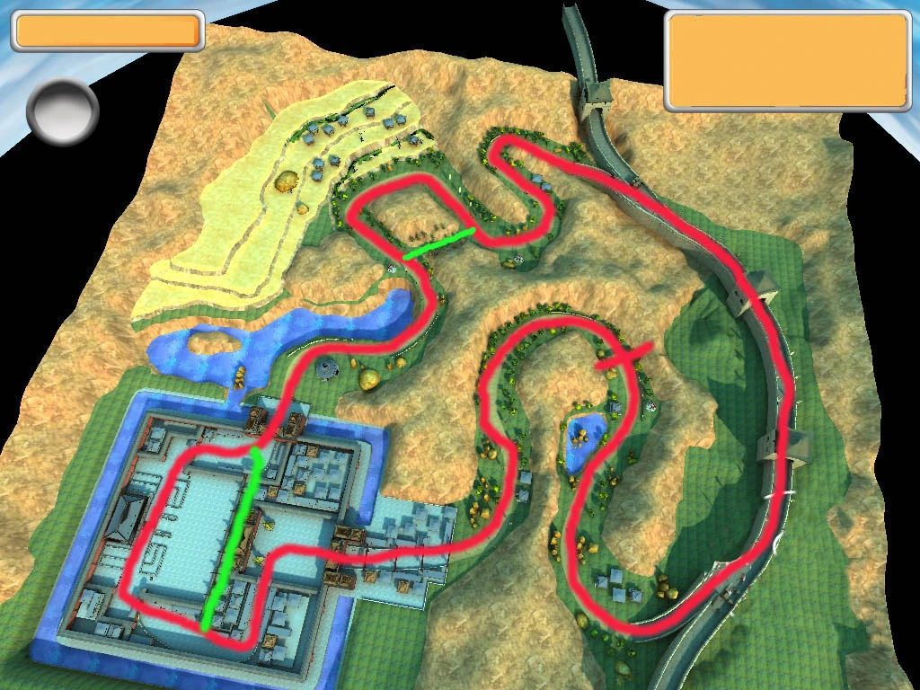 Der Erste befindet sich in der Stadt. Sobald man in der Stadt die ersten beiden Kurven absolviert hat, befindet sich dann rechts der Eingang. Dieser ist eine typische Gasse, durch die man recht einfach durch kommt. Dort befinden sich nur ein paar Kisten die man ohne weiters umgehen kann. Dieser Geheimgang bringt recht viel. Der Zweite kommt kurz nach der Stadt und befindet sich an der langgezogenen Linkskurve. Hier sieht man rechts irgendwann eine, eigentlich nicht übersehbare Lücke. Benutzt man diese erspart man sich sehr viel Zeit. |