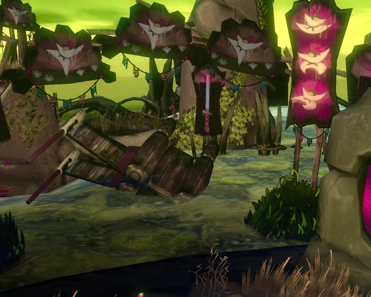 In Moorhuhn Tiger & Chicken zieht ein Skelett Brücken aus dem Moor, damit das Huhn darüber laufen kann. Bei der letzten Brücke zieht es allerdings vorher einen X-Wing aus dem Moor.