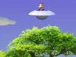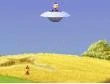 Auch über den Bäumen im Spiel schweben manchmal UFOs und versuchen, diese wegzubeamen. Was sie mit den Bäumen anstellen wollen, ist zwar fraglich, aber das interessiert uns in dem Fall nicht. Man soll sie sich ruhig klauen lassen, denn das bringt dir einen Abzug. Im Gegenteil: Nachdem die Bäume verschwunden sind, tauchen hinter den zurückgebliebenen Baumstümpfen kleine Hühner auf, die 25 Punkte bescheren.